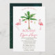 Watercolor palm Christmas tree, balls, pink flamingos on white background. These beautiful Christmas invitations are perfect for Christmas dinner party invitations, holiday gift exchange invitations, Christmas fundraisers, holiday ball invitations, and other events held during the month of December. Just use the template fields to add your own event information.