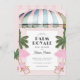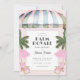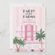 Palm Royale inspired baby shower invitation. Your royale gal is having a baby and it’s time for a party in the palms! Design features palm trees, pink pool chairs and umbrellas, retro art deco hotel and more. Personalise all text for your amazing event.