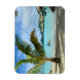 Rectangular photo magnet of a palm tree on sand beach of a luxury overwater thatched roof honeymoon resort on the tropical island Bora Bora, near Tahiti in the pacific archipelago French Polynesia. A great souvenir!