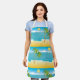 A scenic view of a palm tree beach with a bright sun. This design looks really effective on these Apron