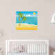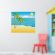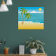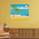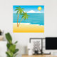 A scenic view of a palm tree beach with a bright sun. This design looks really effective on these Poster