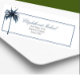 A blue and white Palm Tree elegant personal return address labels. An elegant palm tree is over the names.