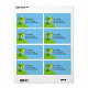 Cartoon illustration of a palm tree. Custom background colour. Custom text fields for name and address.