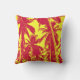Tropical Palm tree design in a red and yellow posterised effect. Bold design cushion with natural pattern of trees. Tropical Palm trees.