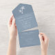 Palm Tree Dusty Blue Tropical Beach Wedding All In One Invitation