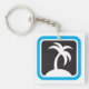A palm tree icon with a black background and blue frame. This design looks really effective on these Keychain