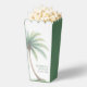 This watercolor palm tree popcorn box adds a breezy tropical vibe with a green beach inspired aesthetic, perfect for destination weddings, summer parties, bridal showers, luaus, and coastal birthday celebrations. A fun and festive choice for beach loving couples, friends, or family gatherings, it brings island charm to your snack table. The hand painted palm tree design creates a relaxed and elegant look. Personalise the box text to match your event.