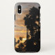 An iPhone case with a historic line of palm trees, made famous by Hollywood, are silhouetted against fiery pink and orange clouds at sunset in Los Angeles, California. Click Customise It to pick your fonts and add your own name or message.