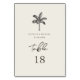 Palm Tree Ivory Minimalist Destination Wedding Table Number Card. All the texts are pre-arranged for you to personalise easily and quickly with your own details.