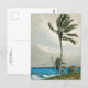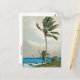 A fine art postcard with the painting by the American artist Winslow Homer (1836-1910), Palm Tree, Nassau (1898). A landscape of tall palm trees blowing in stormy conditions in the Bahamas with a cloudy sky and blue water.
