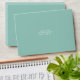 Palm leaf pattern with aqua colour palette on inside with address on front and white palm tree illustration on flap. Address templates on front and back flap.