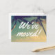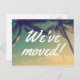 Tropical palm tree retro photo moving postcards for new home in warm destination. Custom move text; We have moved! Add your new change of address on the back. Modern new house cards for home and business relocation. Exotic palmtree beach picture design with stylish script typography. Also great for honeymoon vacation / destination wedding holidays. Upload your own vintage instagram like image to this template optionally. Send out we've moved cards to friends and family.