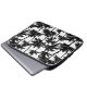 The sleeve is made of nice feeling material and seems very durable. I'm not sure how easy it'll be to clean, but the construction seems sound and the fabric is quick thick. I also like the double zipper. The printing is lovely and appears durable. The white on black contrast is nice, and the design very elegant.