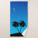 Towel set in a black silhouette of palm trees on a tropical island, against an evening blue gradient background with stars and crescent moon
