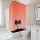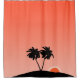 Shower curtain in a silhouette of palm trees on a tropical island, against a sunset orange gradient background