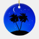 Palm Tree Silhouette, Evening Blue with Stars Ceramic Tree Decoration