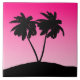 Ceramic tile in a black silhouette of palm trees against a dawn pink gradient background