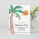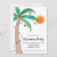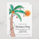 This Christmas Party Invitation is decorated with a watercolor decorated palm tree and sun.