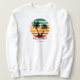 Vibrant Retro Sun with a Black Palm Tree Silhouette.
