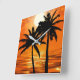 Tropical beach theme wall decor clocks designed with scenic palm tree sunset coastal graphic on high quality acrylic. Keep track of time in your beach house or any home.