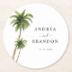 Palm Tree Tropical Beach Coast Destination Wedding Round Paper Coaster