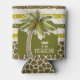 Chic tropical palm tree on stripes and animal print spots are featured on these can coolers personalised with your family name or any wording in chic lettering. MATCHING items in our store.
