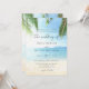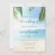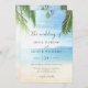 Watercolor tropical palm trees and beach paired with elegant calligraphy script make this beach wedding invitation feel fresh and inviting. Personalise with your wedding information.