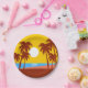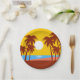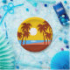Tropical island sunset with palm tree Hawaiian style graphic.