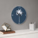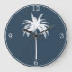 Palm Tree Vintage Tropical Elegant Blue White Large Clock