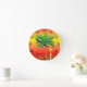 The clock did not take as long to arrive as I thought it might and was extremely well packaged. I didn't do the measurements so I didn't realize it is a little smaller than the average clock but that does not matter (just make sure you check if that's important to you).It is really nifty! It seems very solid and well made not flimsy at all. It has been going well and has kept good time in its few weeks on my wall. Nice product. Gets noticed too! Nicer in real life than the picture but true to the picture