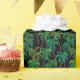 Beautiful acrylic seamless floral summer pattern with palm trees. Perfect for wallpapers, web page backgrounds, surface textures, textile. Acrylic paint texture on black background.