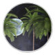 This design features an evening landscape: a full moon is shining brightly against a dark black sky, and palm trees with their green fronds are in the foreground. It is a beautiful piece of computer-generated art.