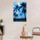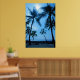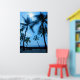 Beautiful Hawaiian palm trees with sunlight reflections in a blue setting.