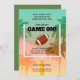 Football game day party invitations super fans will love featuring palm trees and a football sailing through the uprights. Perfect invitations for the big game February 13, 2022 in Los Angeles. MATCHING plates, napkins, coasters, t-shirts, beverage labels, can coolers and more in our store.