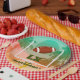 Football game day paper plates - in 2 sizes. Super fans will love these plates featuring palm trees and a football sailing through the uprights. MATCHING party invitations, plates, napkins and more in our store.
