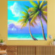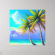 The prominent feature of this canvas print's design is the two palm trees in the front right, which add a touch of nature and give the piece a sense of depth. The intricate details and vivid colours of the palm trees bring the design to life and create a realistic portrayal of a beautiful tropical setting.