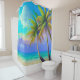 Bring the beauty of a tropical paradise into your bathroom with our stunning palm tree shower curtain. The design depicts a breathtaking view of the ocean as night falls or a storm rolls in, with two palm trees standing tall in the front right of the scene. The sky is painted with varying shades of blue, with white and blue clouds as well as other colours such as yellow and purple adding an extra touch of beauty.