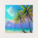 Introduce a touch of paradise to your living space with our stunning palm tree tapestry. The intricate design captures the serenity of the beach at nightfall or during a storm with its beautiful depiction of the ocean, sand, and two striking palm trees in the front right of the image. The sky features an array of blue shades, with white and blue clouds, as well as other colours like yellow and purple that create a peaceful and relaxing atmosphere.
