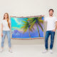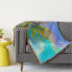 Introducing our stunning throw blanket, designed to transport you to a tropical paradise every time you use it. Featuring a beautiful design of palm trees silhouetted against a sky with varying shades of blue, this blanket captures the serene beauty of the beach as night falls or a storm rolls in. The white and blue clouds and other colours like yellow and purple add a touch of vibrancy to the design, making it a perfect addition to any room in your home.