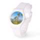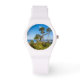 Sporty watch featuring a peaceful morning view of some palm trees in Gulf Breeze, Florida, United States. There is a table and chairs under the trees making the perfect spot to relax and enjoy the view. Looking for more prints or products? Feel free to visit my store: http://www.zazzle.com/timelessmomentsphtgy This photo was taken by Jennifer White with Timeless Moments Photography. All images are copyrighted © Timeless Moments Photography.