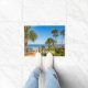 Welcome doormat that can be customised featuring a peaceful morning view of some palm trees in Gulf Breeze, Florida, United States. There is a table and chairs under the trees making the perfect spot to relax and enjoy the view. Looking for more prints or products? Feel free to visit my store: http://www.zazzle.com/timelessmomentsphtgy This photo was taken by Jennifer White with Timeless Moments Photography. All images are copyrighted © Timeless Moments Photography.