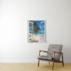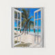 Tropical beach Ocean view, fake window scene, for a windowless office wall. Fun, realistic optical illusion scenic wall hanging for an office or study wall.
