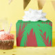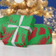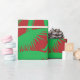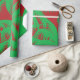 Green palm tree silhouette outlines on a red background for a fun tropical beach style Christmas gift wrap.