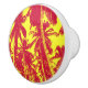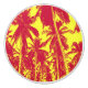 A pattern is of palm trees against a clear sky, with a posterised effect. Leaf pattern. Pattern of leaves. Red and yellow.