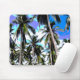 Bold palm trees design in a posterised style. Tropical palm trees. Mainly blue, green and white.