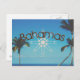 View of the ocean and many palm trees on a Paradise Island in Nassau, Bahamas.