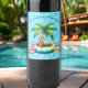 Hold an unforgettable pool party with this azure - light blue patio tile design that includes a palm tree, a cute flamingo and some cold refreshing drinks by the pool.