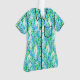 Cool colours of turquoise, lime greens and azure blues. Watercolor painted swaying palms create this allover pattern that is inspired by a Hawaiian afternoon. Colours create the illustration of wind between the palm fronds.