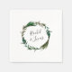 Designed to match our Palm Wreath wedding collection, these tropical chic napkins feature your names in hand lettered script, encircled by a watercolor wreath of green palm leaves and fronds.