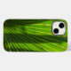This iPhone 14 Case features an original photograph by ZoeSPEAK of the shadows of a saw palmetto frond over a background of a palmetto frond. The shadows form soft stripes across the detailed green bands of this tropical palm, with fronds shaped like big fans.